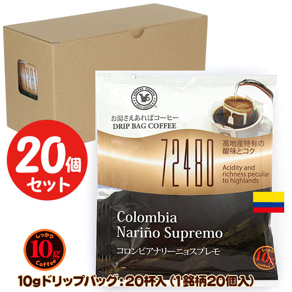10gドリップバッグ 72480 コロンビア ナリーニョ スプレモ 20杯 お湯さえあればコーヒー 特別な日に飲みたいコーヒー 【10gx20袋】