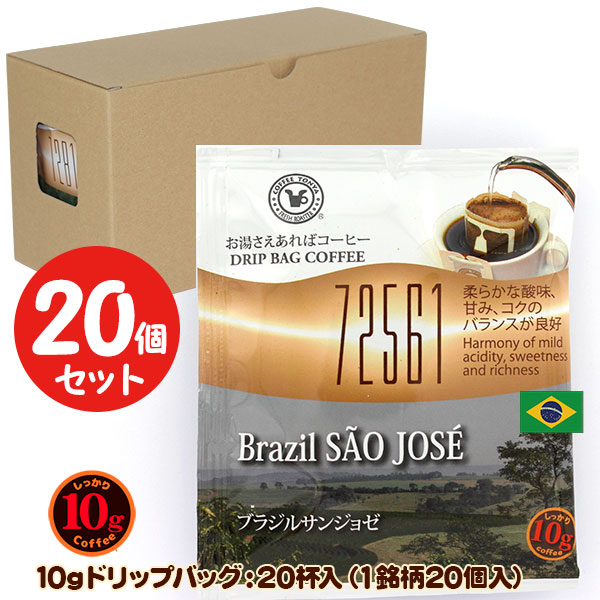 10gドリップバッグ 72561 ブラジルサンジョゼ 20杯 お湯さえあればコーヒー 特別な日に飲みたいコーヒー【10gx20袋】