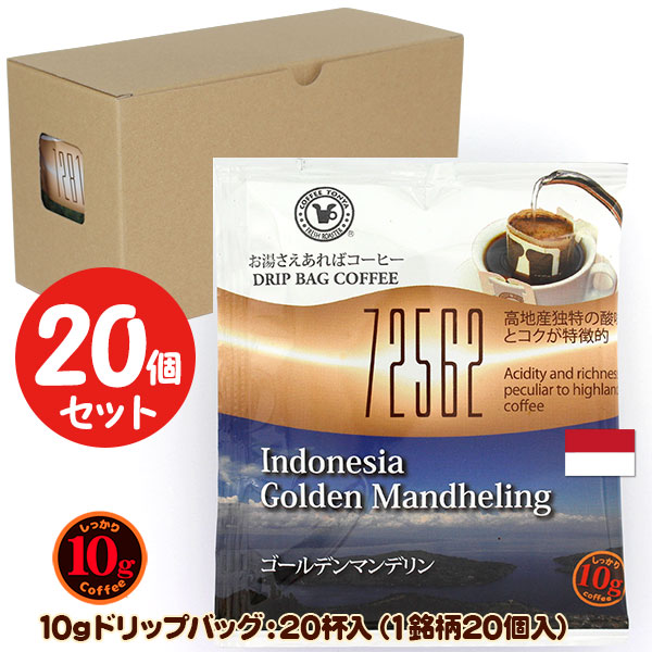 10gドリップバッグ 72562 ゴールデンマンデリン 20杯 お湯さえあればコーヒー 特別な日に飲みたいコーヒー【10gx20袋】