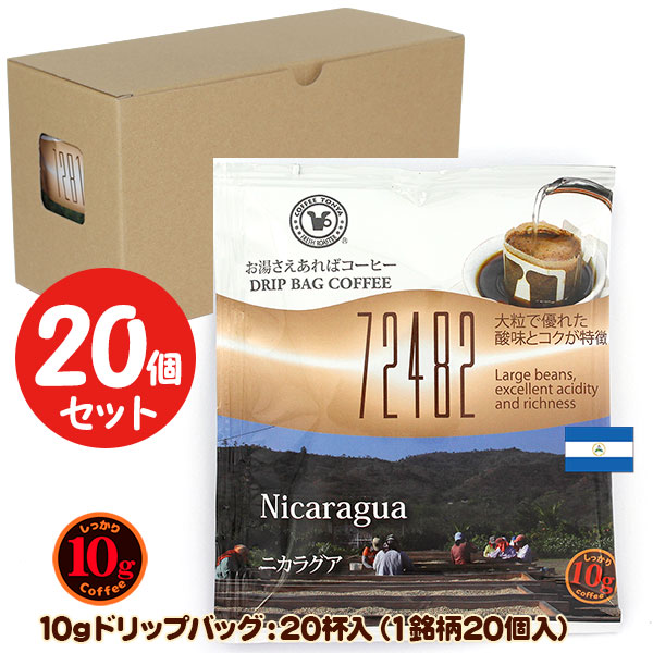 10gドリップバッグ 72482 ニカラグア 20杯 お湯さえあればコーヒー 特別な日に飲みたいコーヒー【10gx20袋】