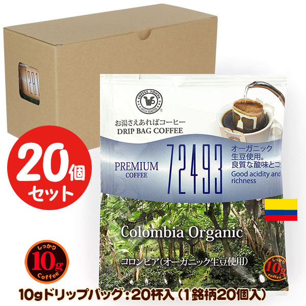 10gドリップバッグ 72493 コロンビア (オーガニック生豆使用) 20杯 お湯さえあればコーヒー 特別な日に飲みたいコーヒー【10gx20袋】