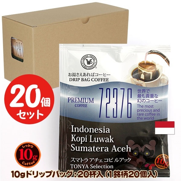 10gドリップバッグ 72376 スマトラアチェ コピルアック Tonya S 20杯 お湯さえあればコーヒー 特別な日に飲みたいコーヒー 【10gx20袋】