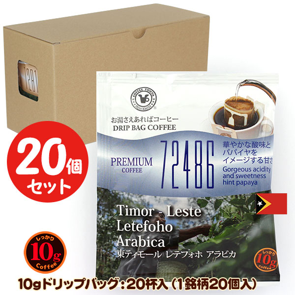 10gドリップバッグ 72486 東ティモール レテフォホ アラビカ 20杯 お湯さえあればコーヒー 特別な日に飲みたいコーヒー 【10gx20袋】