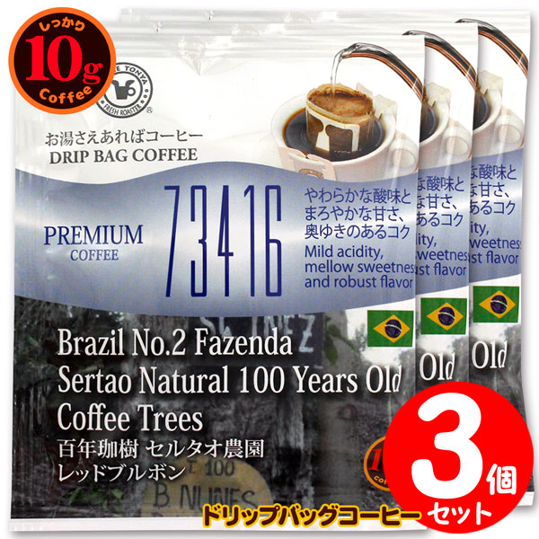 10gドリップバッグ 73416 ブラジル 百年珈樹 セルタオ農園 レッドブルボン 3杯 お湯さえあればコーヒー 特別な日に飲みたいコーヒー 【10gx3袋】