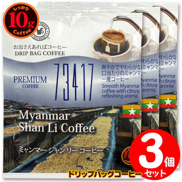 10gドリップバッグ 73417 ミャンマー シャンリーコーヒー 3杯 お湯さえあればコーヒー 特別な日に飲みたいコーヒー 【10gx3袋】