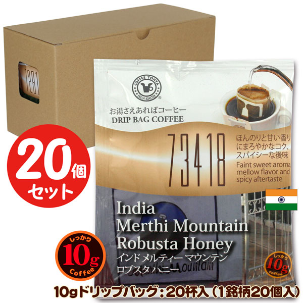 10gドリップバッグ 73418 インド メルティーマウンテン ロブスタハニー 20杯 お湯さえあればコーヒー 特別な日に飲みたいコーヒー 【10gx20袋】