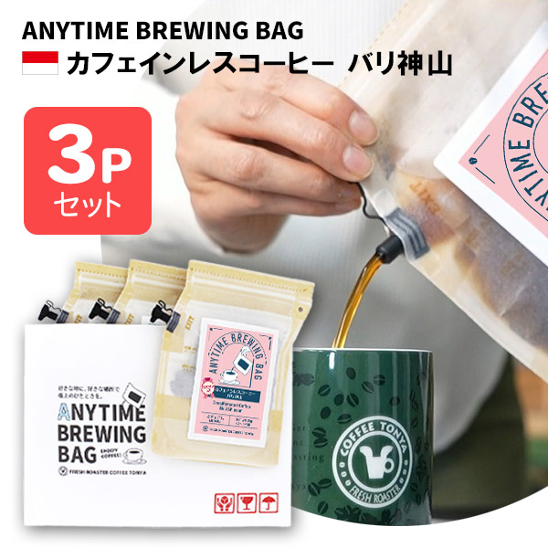 【ANYTIME BREWING BAG カフェインレスコーヒー バリ神山 3個セット メール便】
