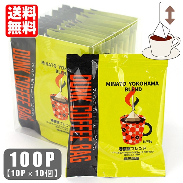 珈琲問屋 ダンク式コーヒーバッグ 港横濱ブレンド 10P×10個(合計100P) 個包装 送料無料
