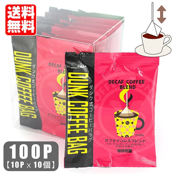 珈琲問屋 ダンク式コーヒーバッグ カフェインレスブレンド 10P×10個(100P) 個包装 送料無料