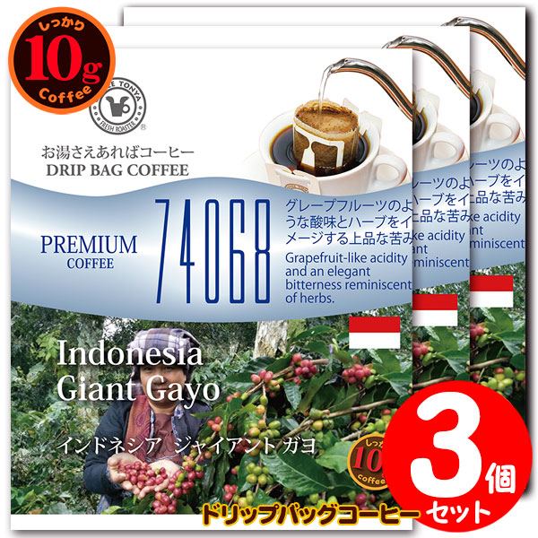 数量限定品 10gドリップバッグ 74068 インドネシア ジャイアント ガヨ 3杯 お湯さえあればコーヒー 特別な日に飲みたいコーヒー 【10gx3袋】