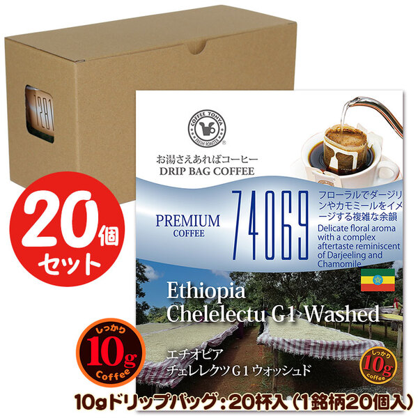 10gドリップバッグ 74069 エチオピア チェレレクツG1 ウォッシュド 20杯 お湯さえあればコーヒー 特別な日に飲みたいコーヒー 【10gx20袋】