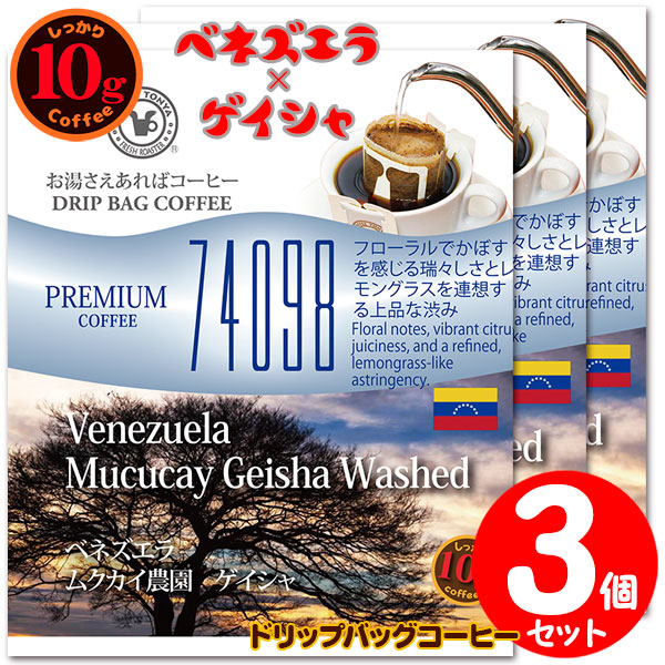 数量限定品 10gドリップバッグ 74098 ベネズエラ ムクカイ農園 ゲイシャ 3杯 お湯さえあればコーヒー 特別な日に飲みたいコーヒー 【10gx3袋】