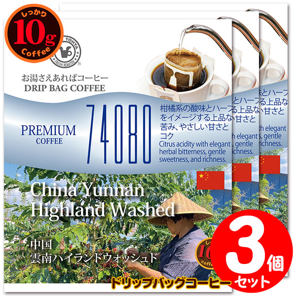 10gドリップバッグ 74080 中国 雲南ハイランド ウォッシュド3杯 お湯さえあればコーヒー 特別な日に飲みたいコーヒー 【10gx3袋】