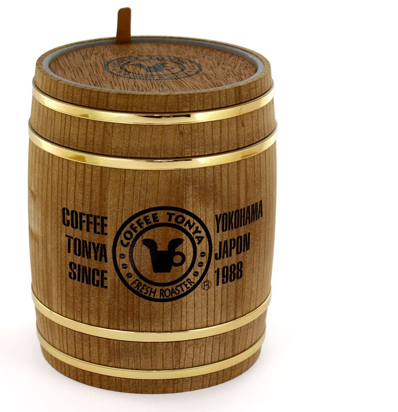 珈琲問屋のロゴが入ったかわいらしいミニ木樽です。