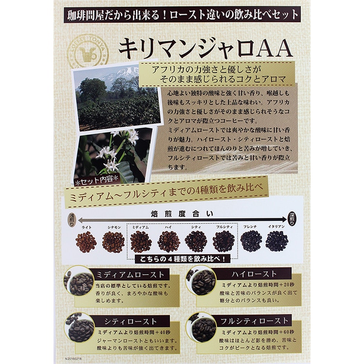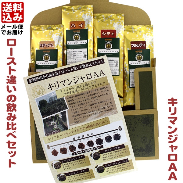 【メール便・配達日時指定不可】 キリマンジャロAA ローストお試し4種メール便 (解説付)