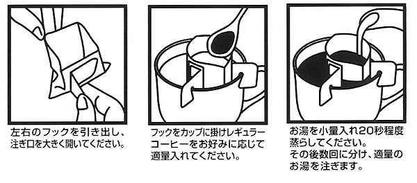 (3)これで粉がこぼれないオリジナルお湯さえあればコーヒーの完成です。![]() あっという間にオリジナルお湯さえあればコーヒーの完成です。 |