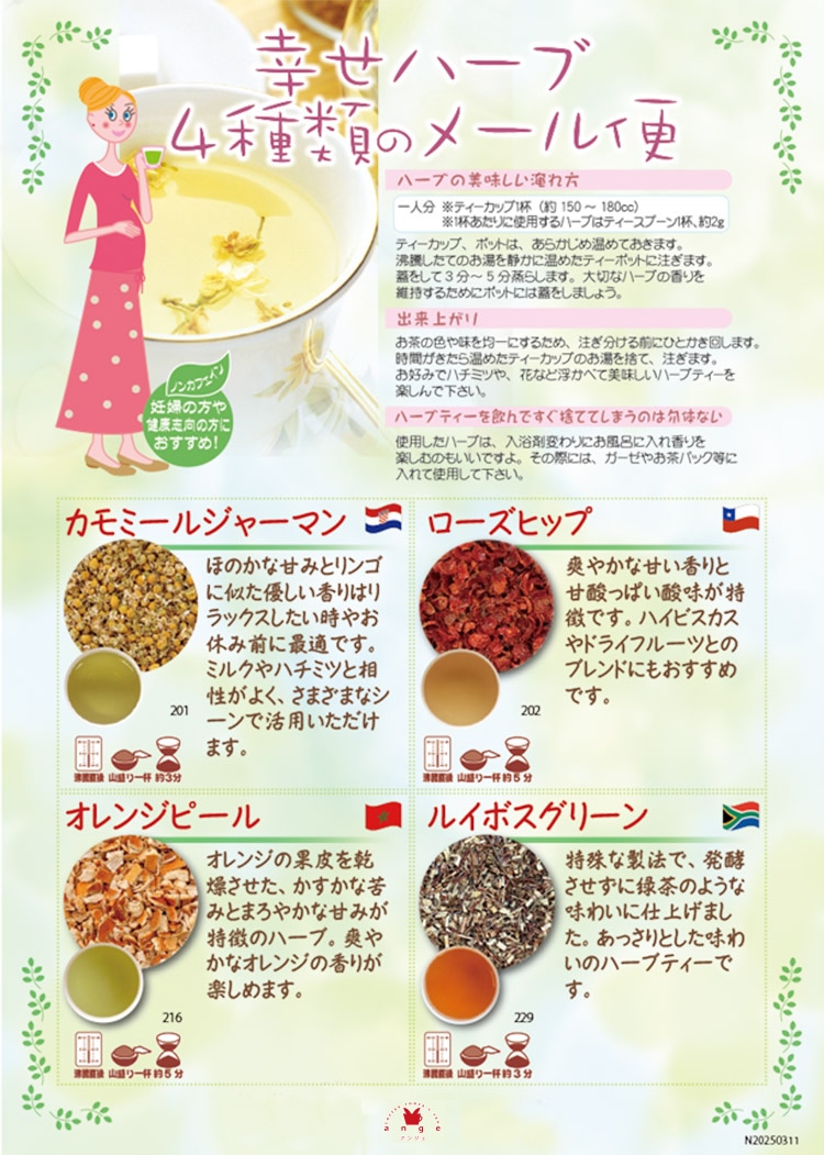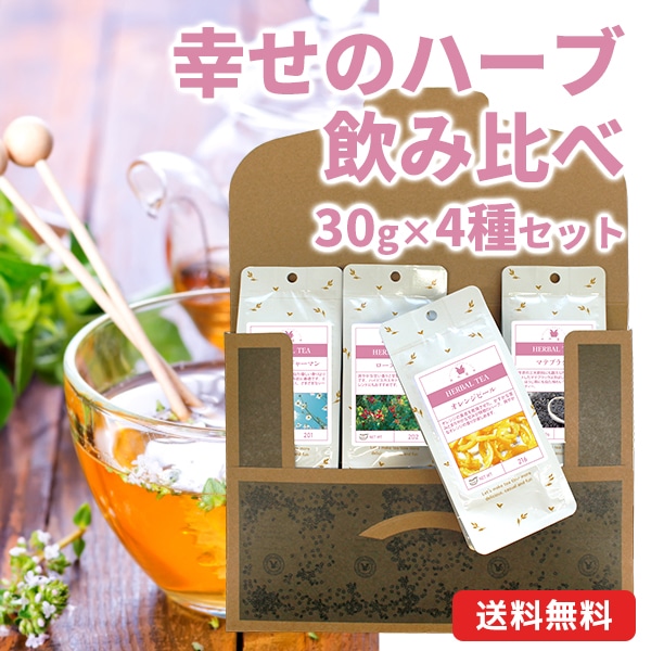 【メール便・配達日時指定不可】 幸せのハーブ飲み比べメール便 4種セット (各30g入/解説付き)