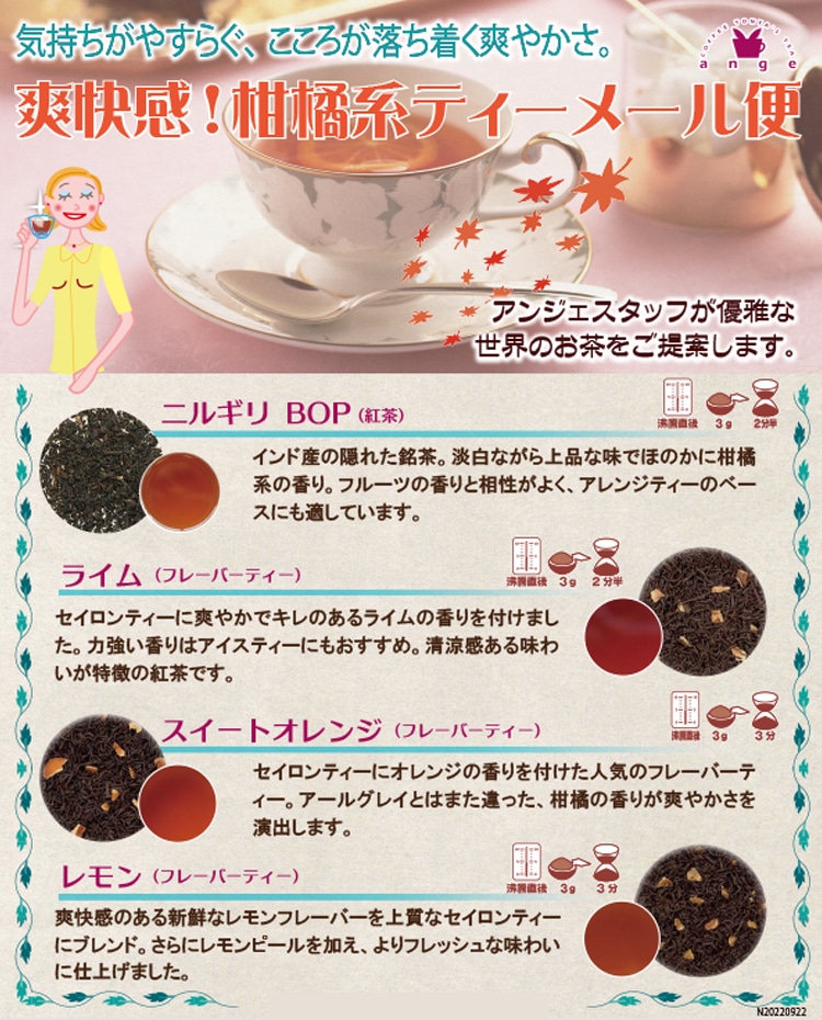 【メール便・配達日時指定不可】 爽快感!柑橘系ティーメール便4種セット (茶葉解説付き)