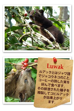 ジャコウネコの消化器官で酵素の作用を受け、腸内で発酵し排泄されたことで、このコーヒー豆にはムスク香のような独特で複雑な香味と芳醇な味がつくと言われています。