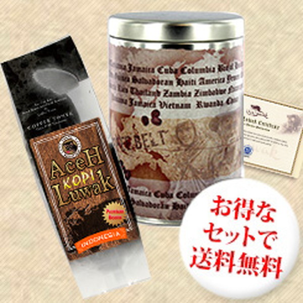 【コーヒーベルトマップキャニスター付き】 スマトラアチェ コピ ルアック Tonya Selection(生豆時100g) セット 送料無料