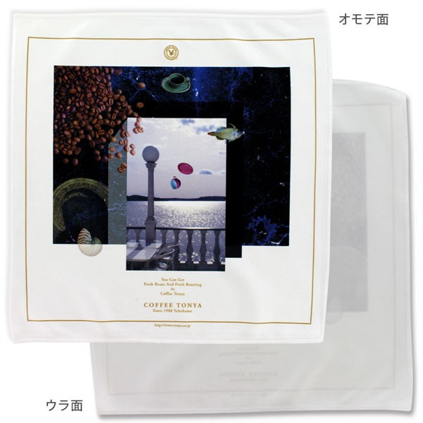 珈琲問屋オリジナルのデザインが施されたマイクロファイバーハンカチです。