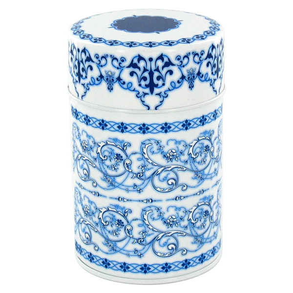 高級陶器のようなヨーロッパ調の模様をあしらった茶缶です。
