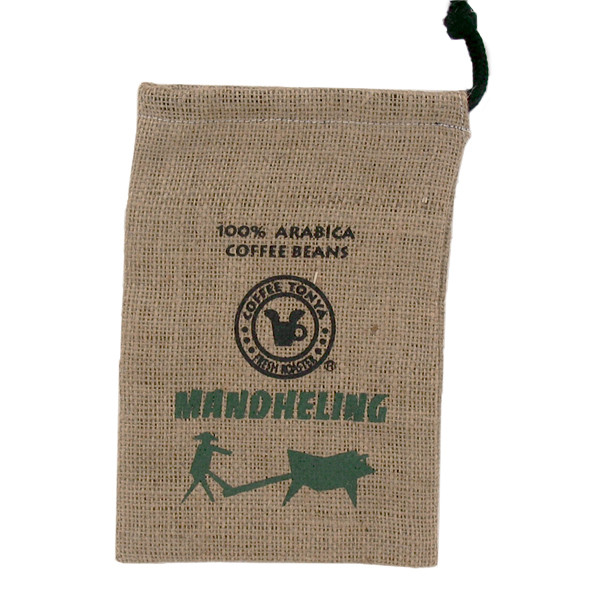 こちらは「Mandheling」の名とインドネシアの農作業風景をイメージしたイラスト入りの麻袋です。