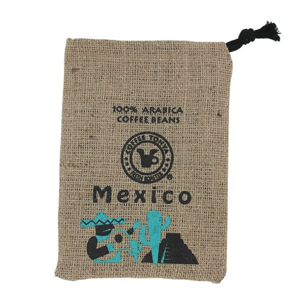 こちらは「Mexico」の名とメキシコの風景をイメージしたイラスト入りの麻袋です。