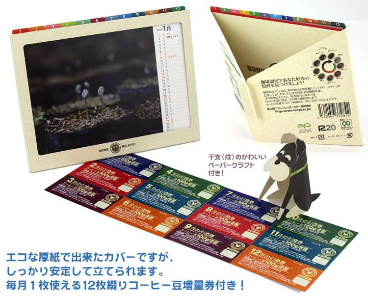 珈琲問屋オリジナル 2018年 卓上カレンダー(約15cm×19.2cm)