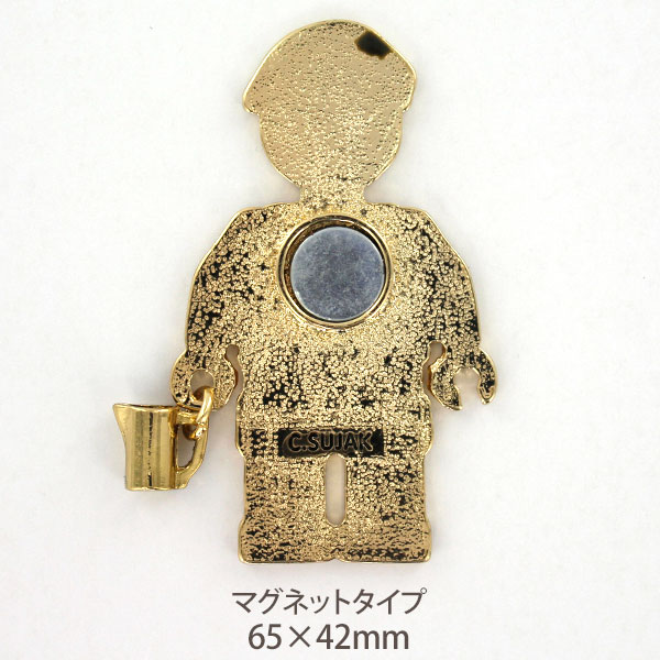 SUJAK バリスタ マグネット フィギュア男性 グリーンエプロン ゴールドメッキ ゴールドピッチャー 65×42mm SJ_MG_108