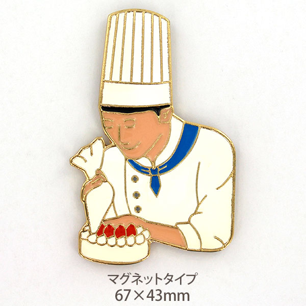 SUJAK パティシエ マグネット ケーキ男性 ブルー ゴールドメッキ 67×43mm SJ_MG_117
