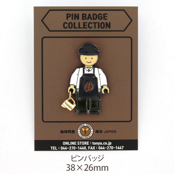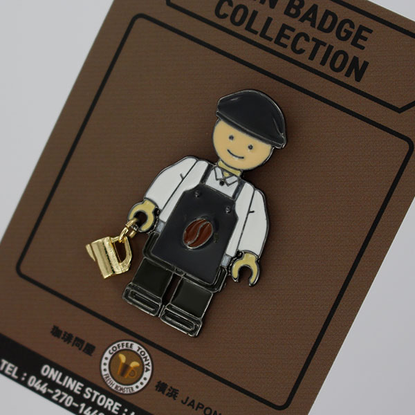 SUJAK バリスタ ピンバッジ フィギュア男性 グレーエプロン ブラックメッキ ゴールドピッチャー 38×26mm SJ_SP_125