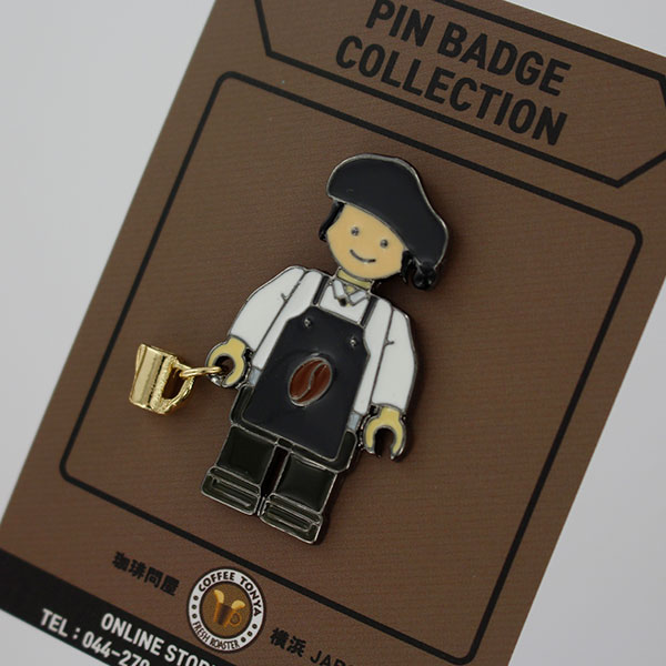 ブラック(グレー)エプロンにブラック(グレー)キャスケットの 女性フィギュアのバリスタピンバッジです。