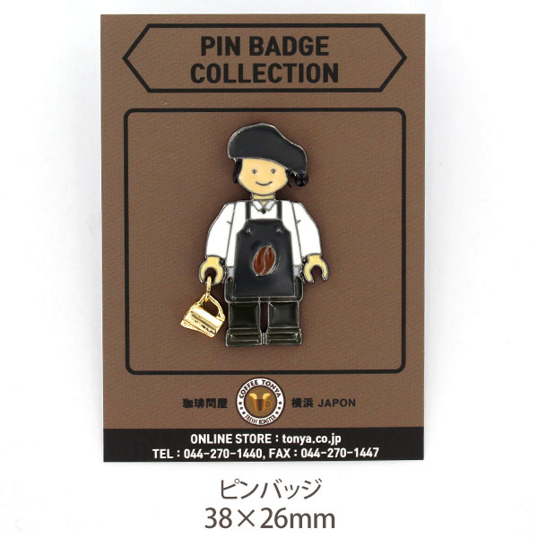 SUJAK バリスタ ピンバッジ フィギュア女性 グレーエプロン ブラックメッキ ゴールドピッチャー 38×26mm SJ_SP_126