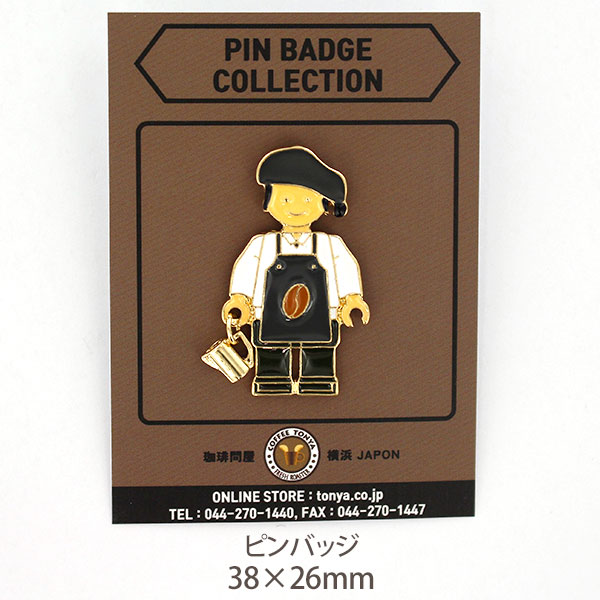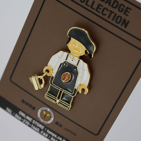 SUJAK バリスタ ピンバッジ フィギュア女性 グレーエプロン ゴールドメッキ ゴールドピッチャー 38×26mm SJ_SP_128