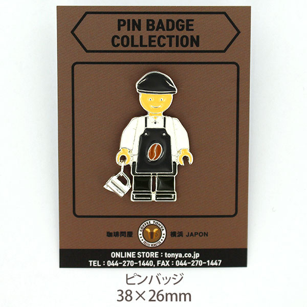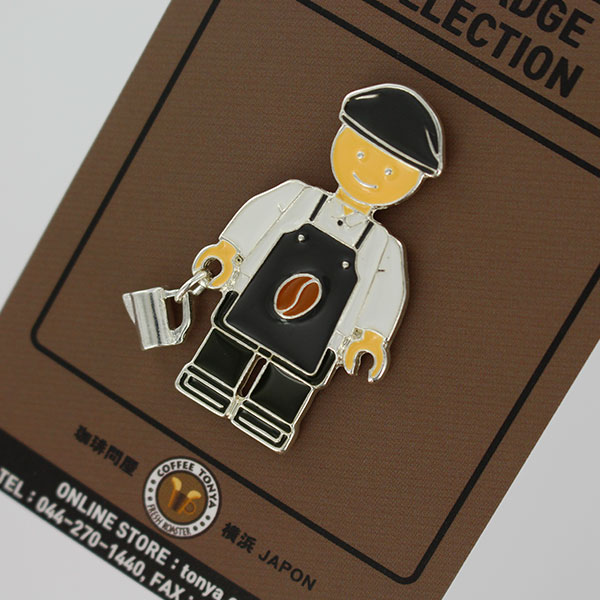 SUJAK バリスタ ピンバッジ フィギュア男性 グレーエプロン シルバーメッキ シルバーピッチャー 38×26mm SJ_SP_129