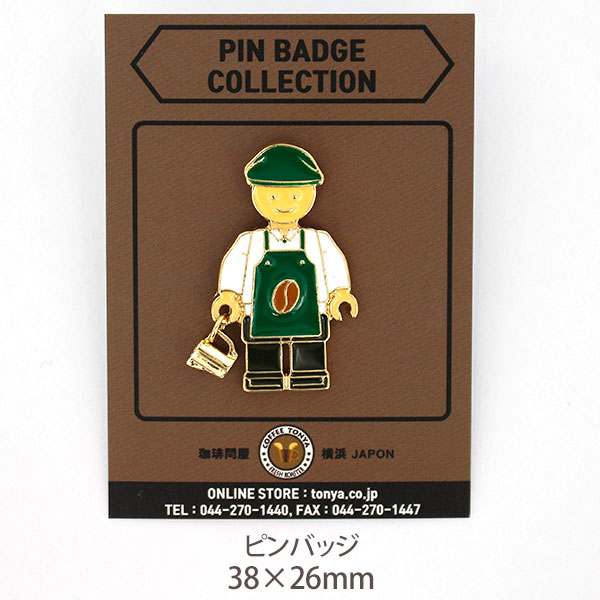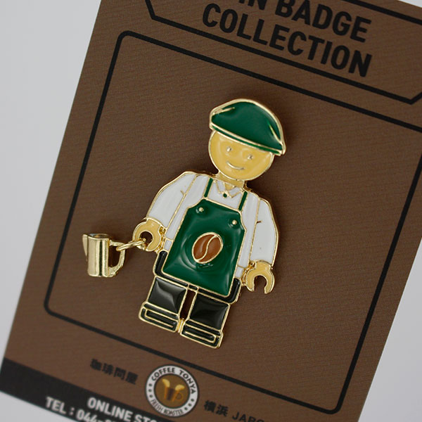SUJAK バリスタ ピンバッジ フィギュア男性 グリーンエプロン ゴールドメッキ ゴールドピッチャー 38×26mm SJ_SP_133