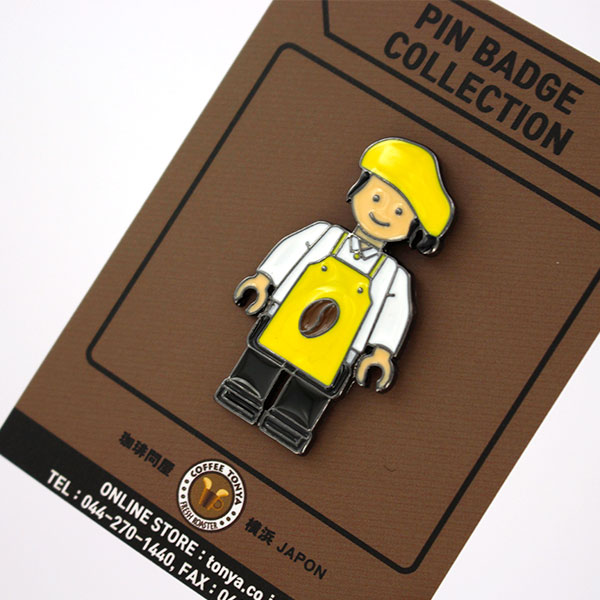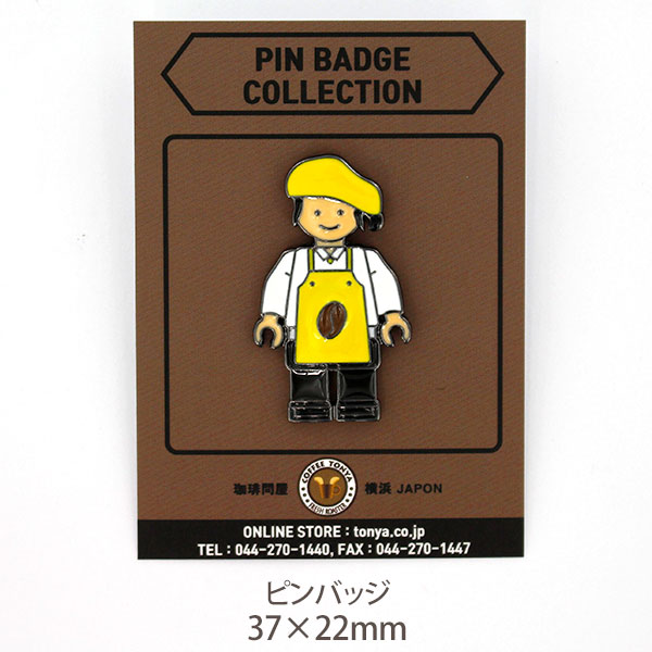 SUJAK バリスタ ピンバッジ フィギュア女性 イエローエプロン ブラックメッキ 37×22mm SJ_SB_137