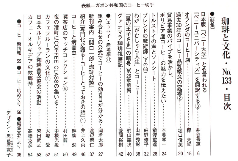珈琲店経営情報誌「珈琲と文化」No.133 春号