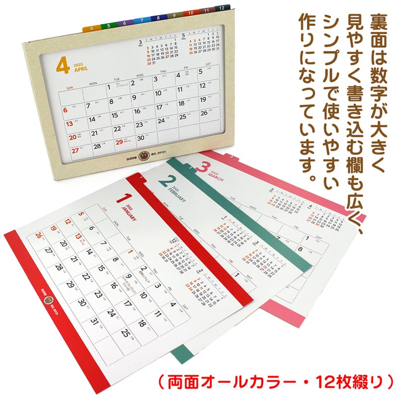 (裏面には前月と翌月も小さく表示しています。)包装以外は全て紙で出来ているエコな仕様です。