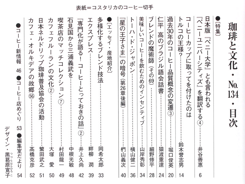 珈琲店経営情報誌「珈琲と文化」No.134 夏号
