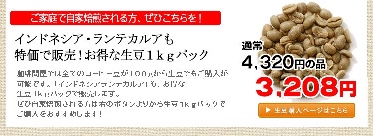 珈琲問屋ではすべてのコーヒー豆が100gから生豆でもご購入が可能です。 こちらの銘柄もお得な生豆1kgパックで販売しております。