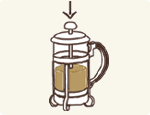 - コーヒープレスは、フィルターを通さずに抽出するので、コーヒー豆の元々の旨みや芳醇な香りをお楽しみいただけます。焙煎で味が決まると言って良いでしょう。