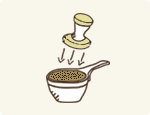 - 淹れ方に合った最適な粒度に挽くことが、美味しさを引き出す秘けつです。また、挽きたての粉の香りは格別ですので、ミルがあればいつでも挽きたてのコーヒーが楽しめます。