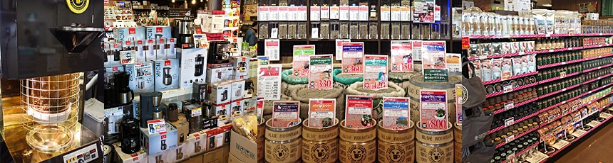 喫茶コーナーの運営、コーヒー関連器具から多彩な食品を販売しています。
