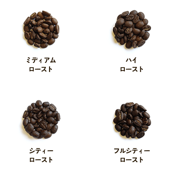 お試しセットロースト4種セットでは、ミディアム〜フルシティまでの4種類を飲み比べ!